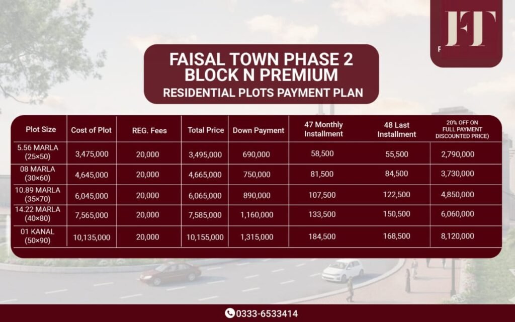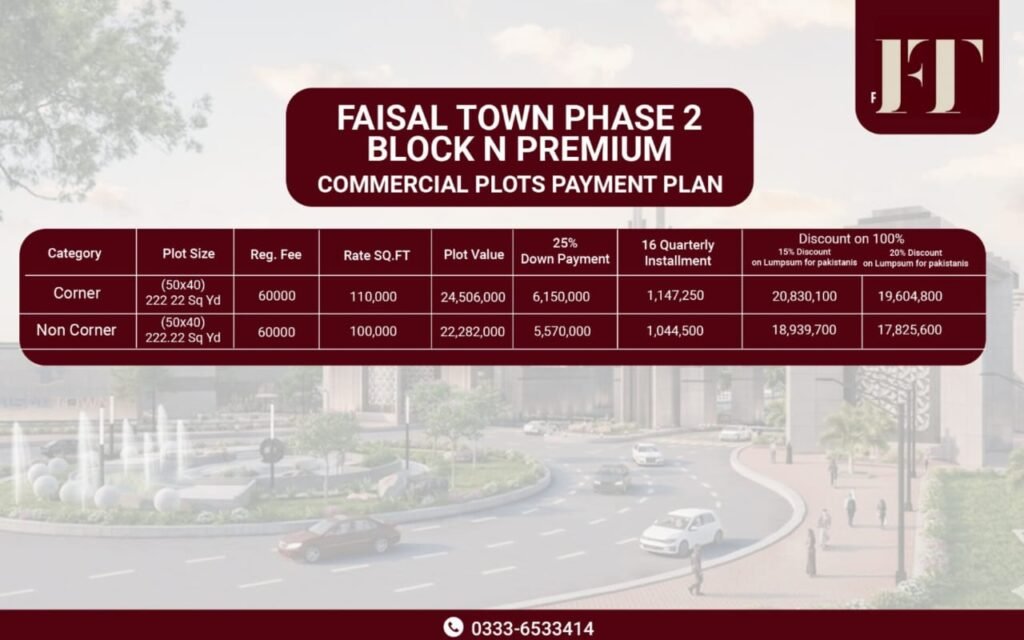 Investing in Faisal Town Phase 2 Overseas Enclave is made easy with flexible and budget-friendly payment plans. These options cater to a wide range of investors, accommodating both immediate and long-term investment strategies. For specific details regarding payment plans, it is advisable to contact the developer or authorized agents, as they may vary depending on plot size and location.